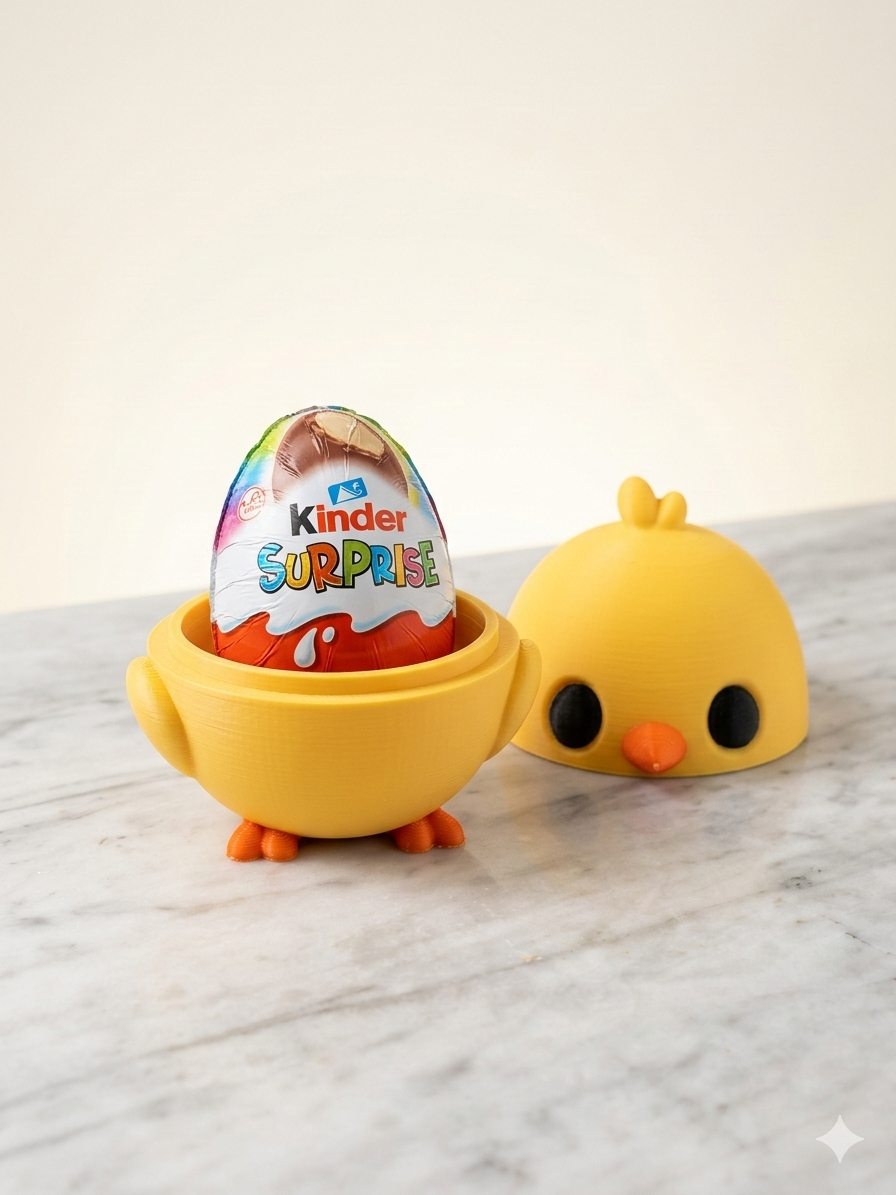 ¡Llegó la forma más original de regalar dulzura esta Pascua! Nuestro Pollito de Pascua 3D no es solo un adorno, es una experiencia. Diseñado con precisión para que un huevo Kinder Sorpresa encaje perfectamente en su interior, es el regalo ideal para los más chicos (¡y los no tan chicos!).